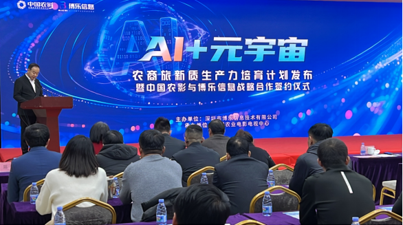 11月29日,《AI元宇宙・农商旅新质生产力培育计划》发布暨战略合作签约仪式在中国农业电影电视中心(以下简称“农影中心”)隆重举行。作为农业领域的“国家队”,农影中心与深耕扩展现实技术多年的国家高新技术企业深圳市博乐信息技术有限公司(以下简称“博乐信息”)达成深度战略合作,共同开启数字技术赋能农商旅产业升级的全新篇章。此次跨界联手,既是国家级媒体平台与前沿科技企业的优势互补,更是积极响应国家“人工智能+”行动号召,以AI元宇宙技术激活农商旅新质生产力的重要实践,为产业高质量发展注入鲜活数字动能。
