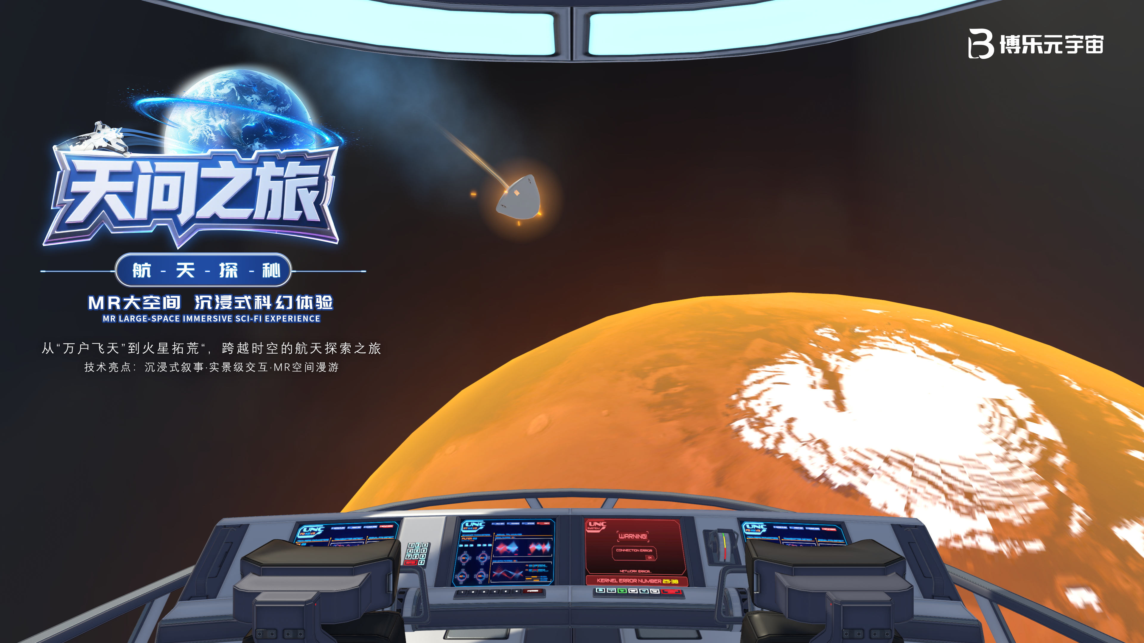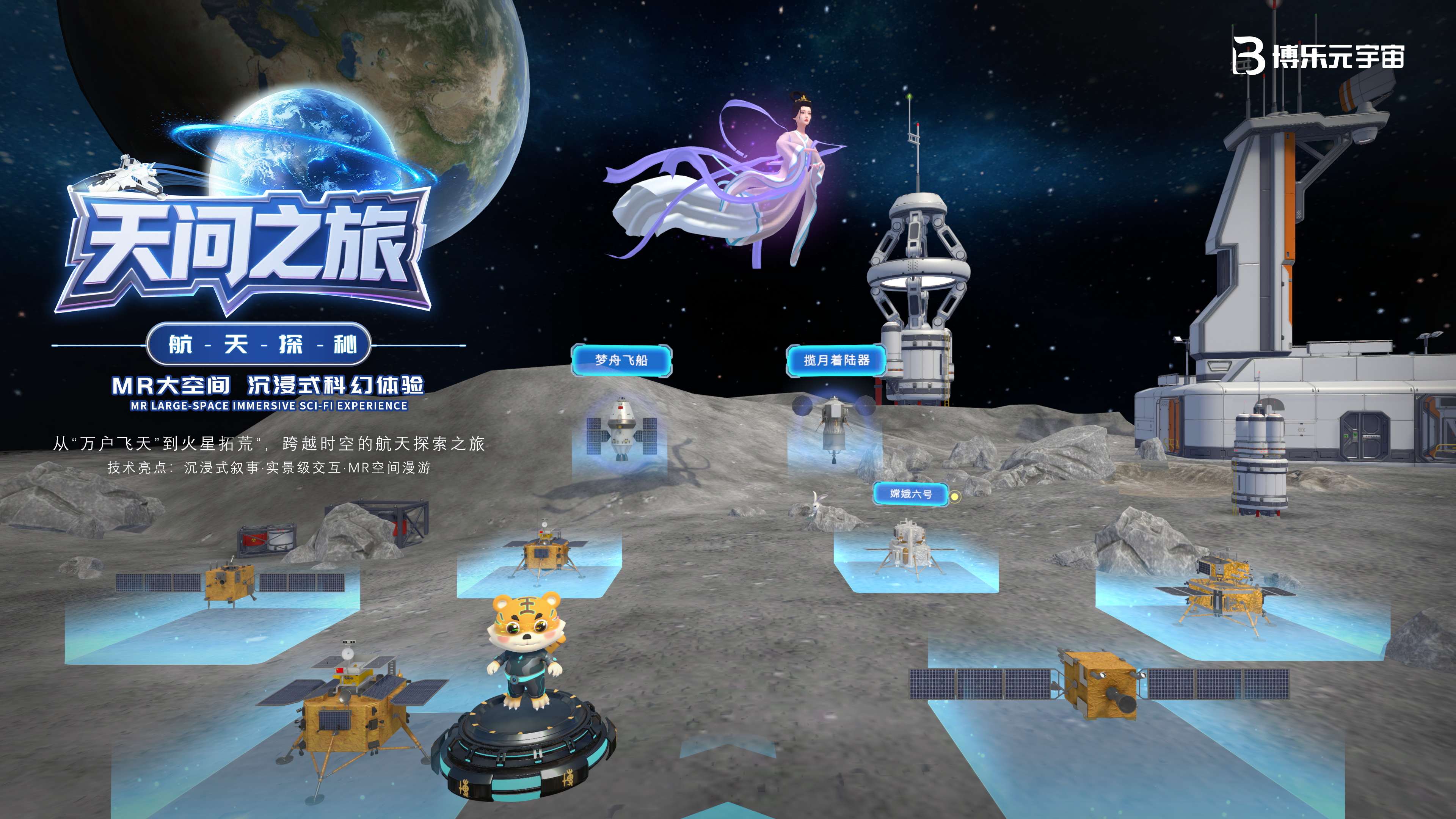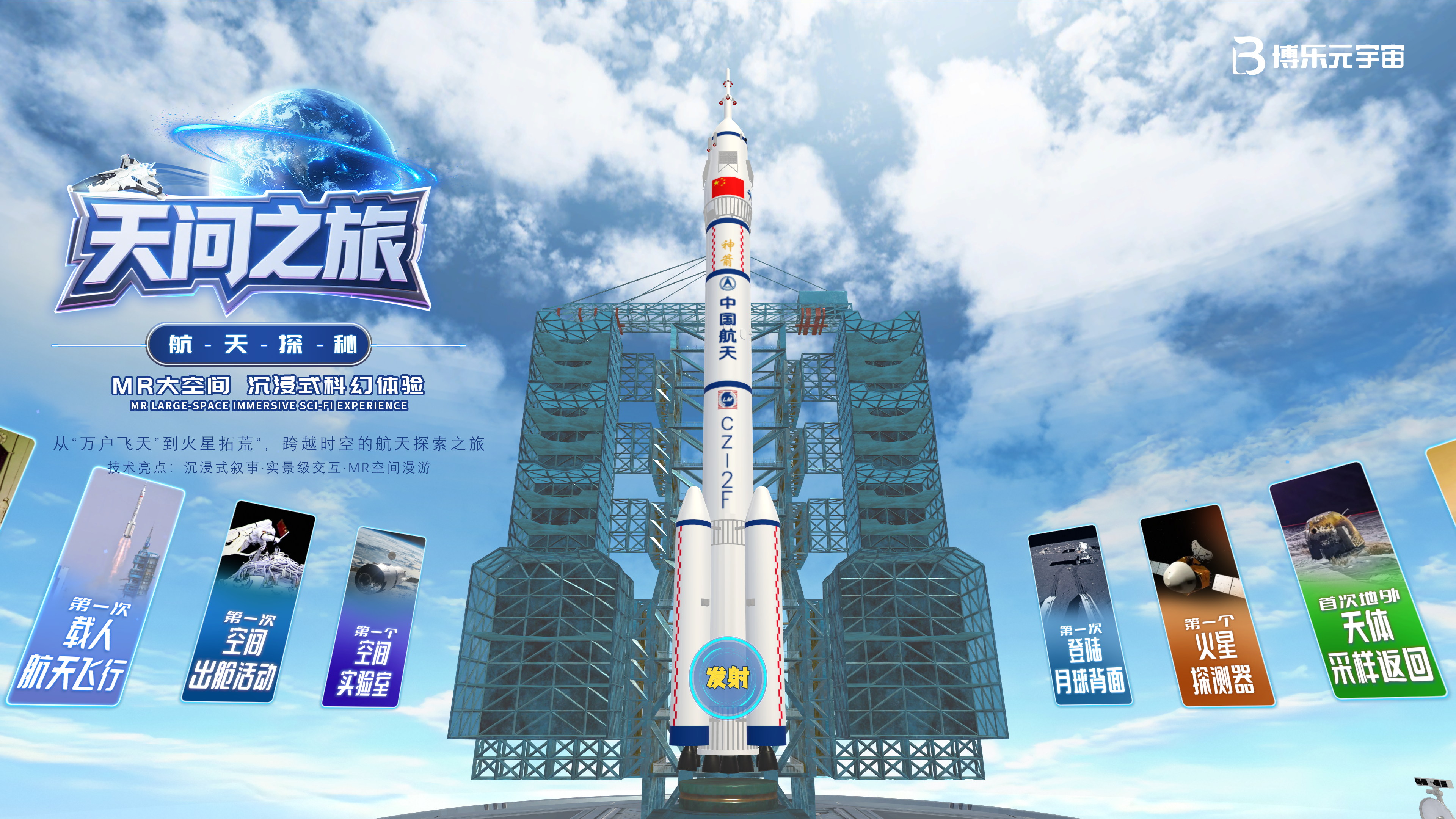 博乐信息用MR技术,让你能穿越600年,从万户飞天到火星登陆,亲历这部波澜壮阔的航天史诗。这就是博乐信息即将推出《天问之旅·航天探秘》MR大空间产品,用最前沿的MR混合现实技术让每个中国人都能参与这份航天梦想。