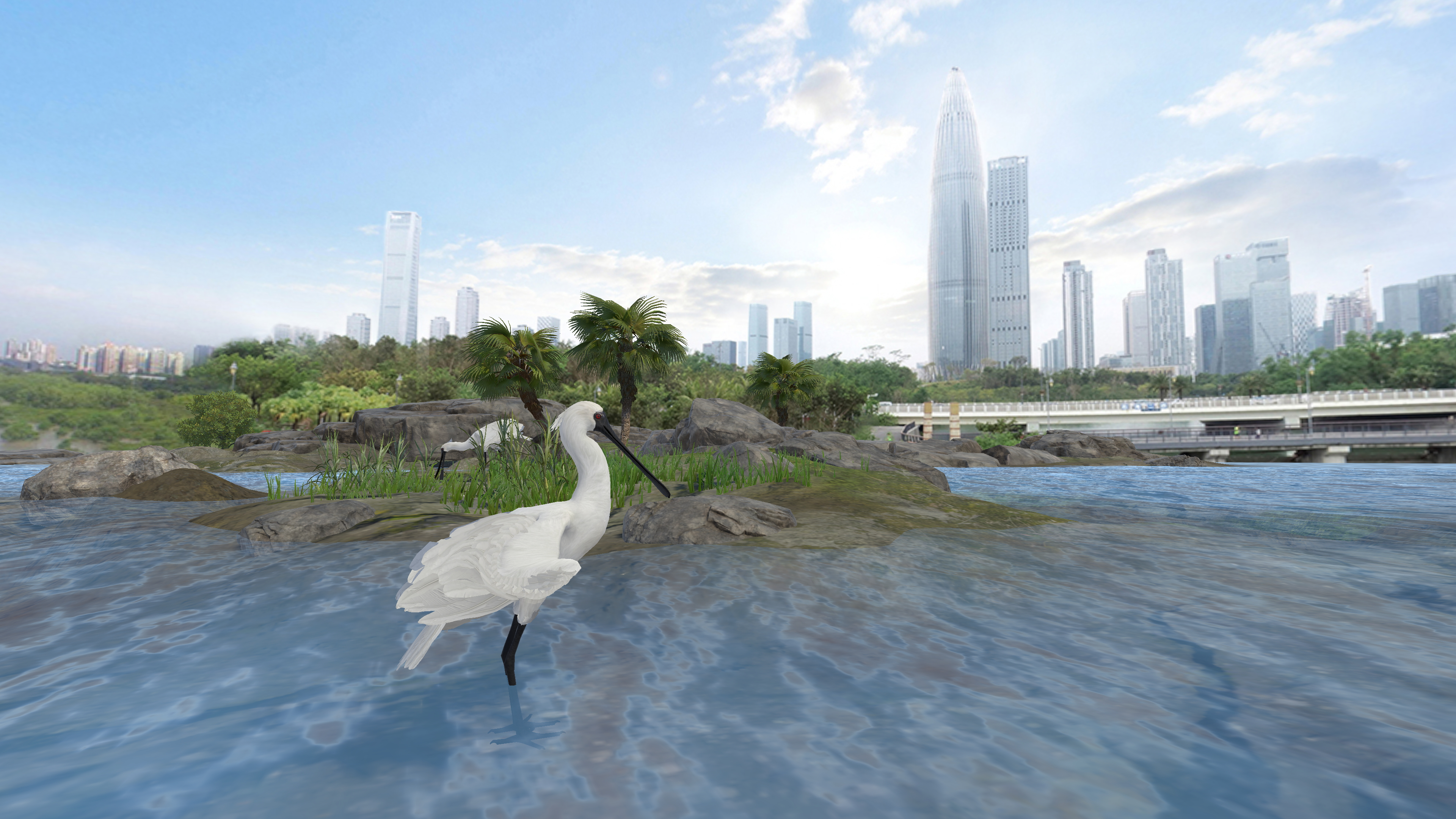 黑脸琵鹭作为深圳湾的“生态名片”,每年10月下旬迁徙至此。项目一期上线了“初见黑面舞者”与“生命习性全解”两大场景。